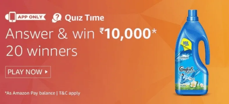 Amazon Quiz Answers Today & Win Rs.15000 Amazon Pay Cash –