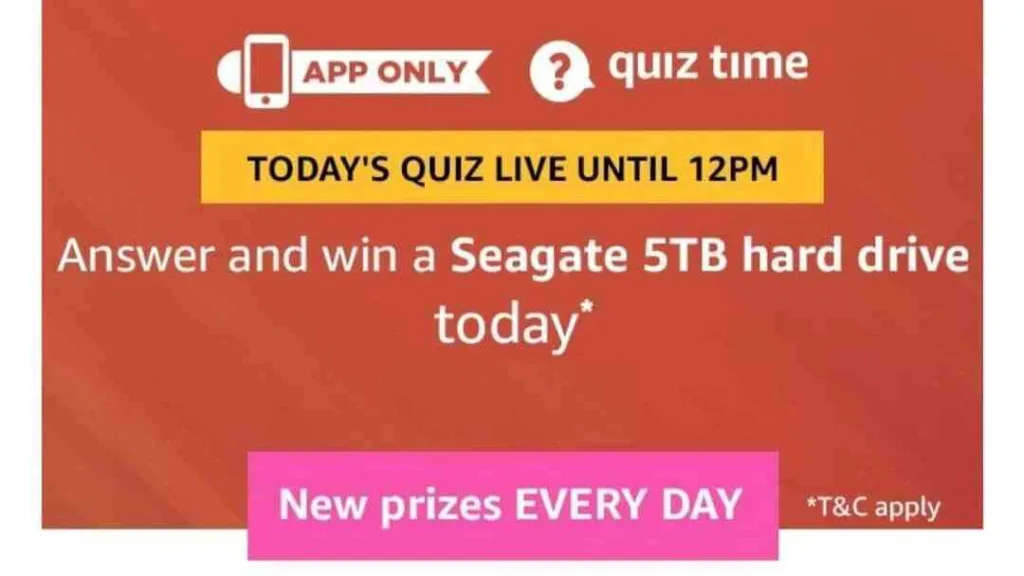 Amazon 1st August Quiz Answers – Answer & Seagate Hard Disk