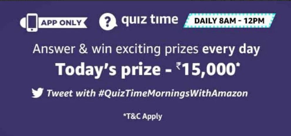 Amazon Quiz Answers Today & Win Rs.15000