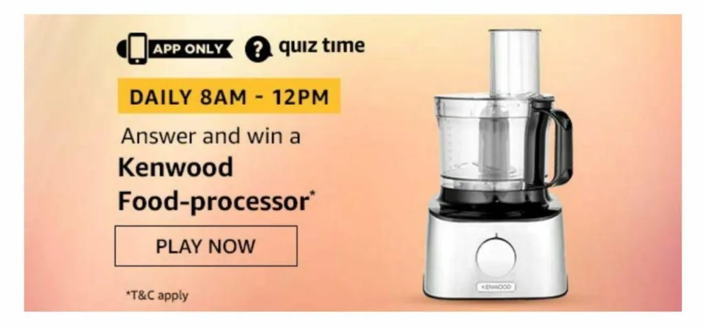 Amazon Quiz Answers Today & Win Kenwood Food Processor
