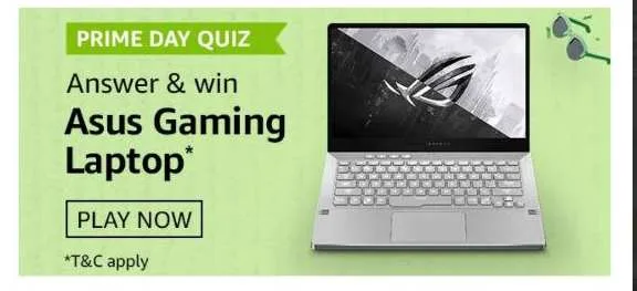 Win Asus Gaming laptop From Amazon Prime Day Quiz, AmazonPrime Day Quiz Answers – Amazon is back With New Quiz For Prime Day. You can Win Asus Gaming Laptop By Giving Answer of 5 Simple questions. We have Added Answer of those Question
