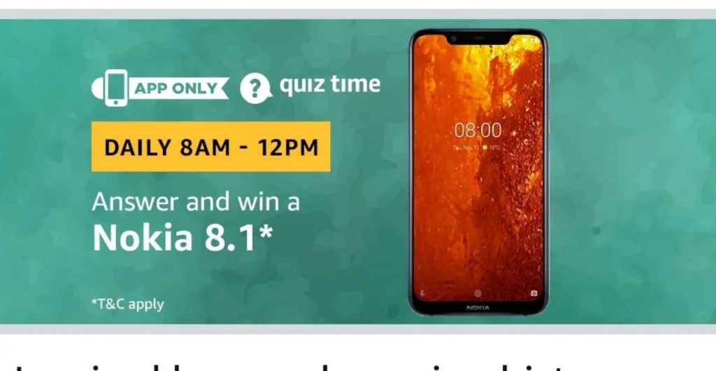 Amazon Quiz 13th February Answers Today – Win Nokia 8.1