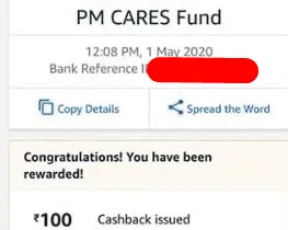 [Proof] Donate Rs.1 or more to PM Cares Fund and Get Upto Rs.100 in Amazon Pay Wallet