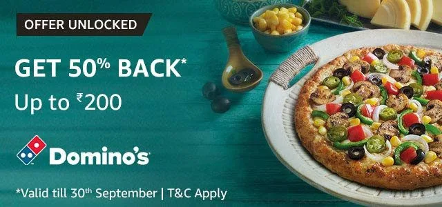Dominos Online Offers, Dominos Promo Codes  & Cashback Offers  – Get All Dominos Offers and Cashback deals daily updated. You can find the current live offers and deals to grab pizzas at very cheap rates. You can save more using Amazon Pay Merchant offers and other wallet offers.