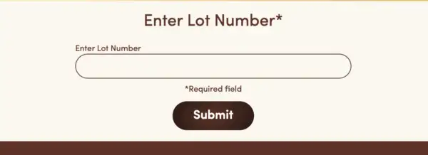 4. Enter Lot Code: Use the Ferrero Rocher lot code from your chocolate box. The code looks like this: L135K01NJR (An example code you can use).