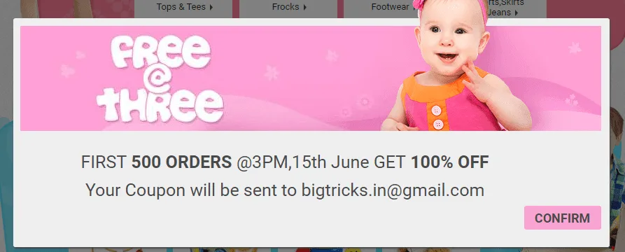 FirstCry Free @3 Offer – Hello Guys, Today there will be a sale on FirstCry at Sharp 3.00 PM for the First 500 Users. Firstcry will be offering Free Shopping worth Rs.500.You will Get The Coupon For Rs.2000 Discount after Sign up for the Sale. So Sign up & Get Your Coupon Now & be Ready before 3 PM with Cart at Sharp 3 PM Apply your Unique Coupon Code.