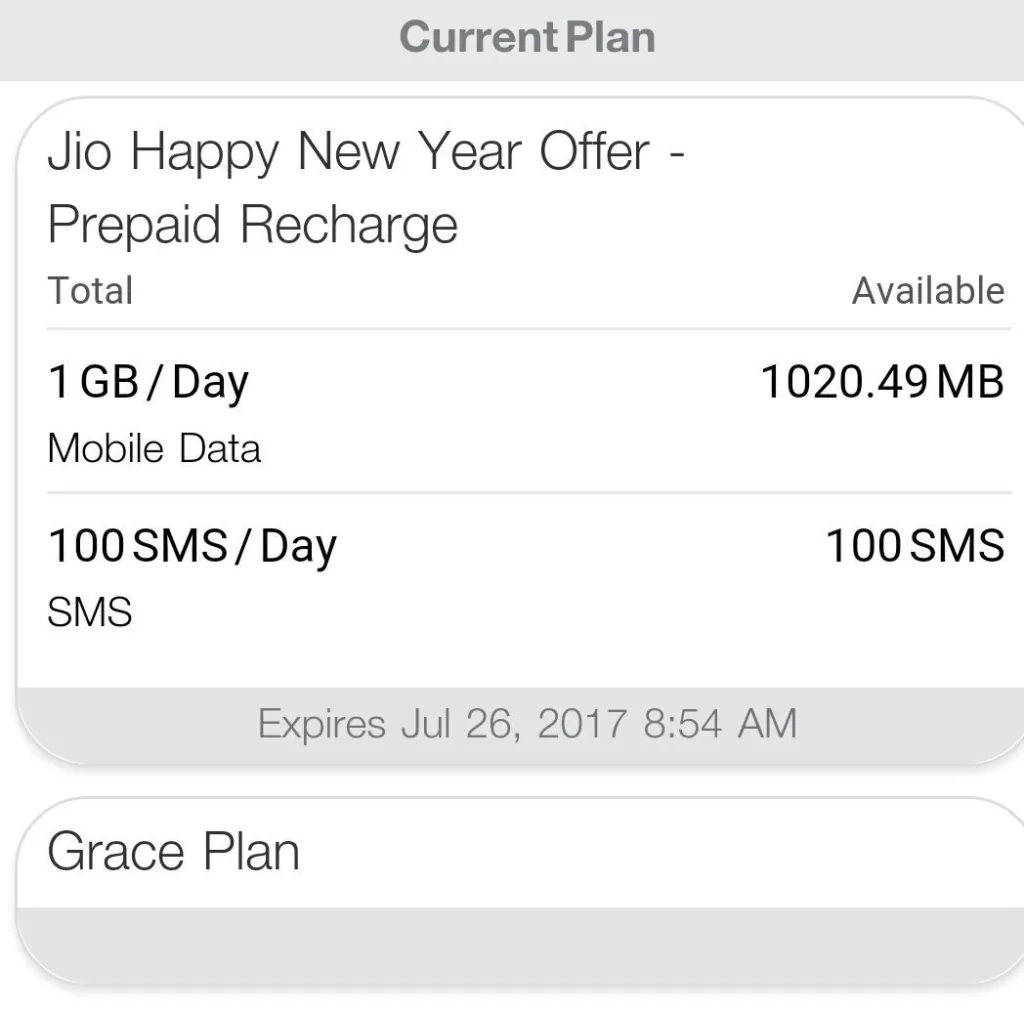 Hello Guyz Jio again played a Game with all of us. Jio preview offer was launched on 5th September 2016 with 3 month validity and should be close on31st December. But Jio launched Jio Happy New Year Offer for More 3 month Now the Expiry date Was 31st march then Jio extended service for 15 days due to high recharge Failure rate. Later Jio extended its services till 27th april(With Some Degradations) Now Jio extended Free services till 26th july with plan name Grace offer.