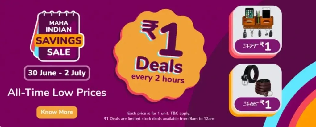 Meesho ₹1 Sale – How to Get ₹1 Product from Maha Indian Savings Sale?