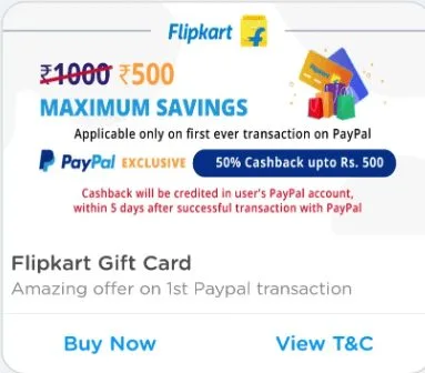 4. Now You can see the card with Flipkart offer. Click on the Buy Now Button.paypal