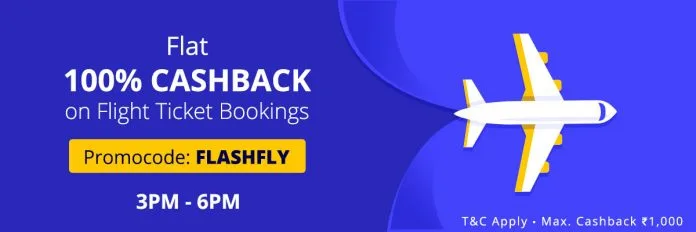 - Get 100% Cashback up to ₹1,000 on flight ticket bookings.