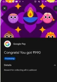 I’m collecting all 6 Laddoos on Google Pay! Play with me and earn up to ₹1,001 cashback. T&Cs apply. https://gpay.app.goo.gl/Sd956b