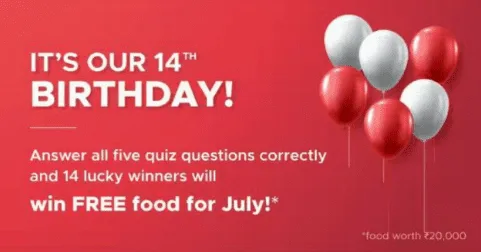 Zomato Birthday Quiz: Answer & Win Upto ₹20,000 Prizes #ZomatoTurns14